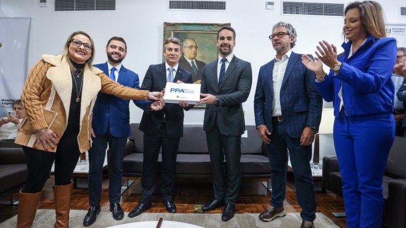 O governo do Estado entregou à Assembleia Legislativa, nesta terça-feira (1º), a proposta do PPA (Plano Plurianual) 2024-2027. O documento, que estabelece as diretrizes, os programas e as ações para a administração pública direta e indireta para os próximos quatro anos, foi entregue pelo governador Eduardo Leite ao presidente do Legislativo, deputado Vilmar Zanchin.