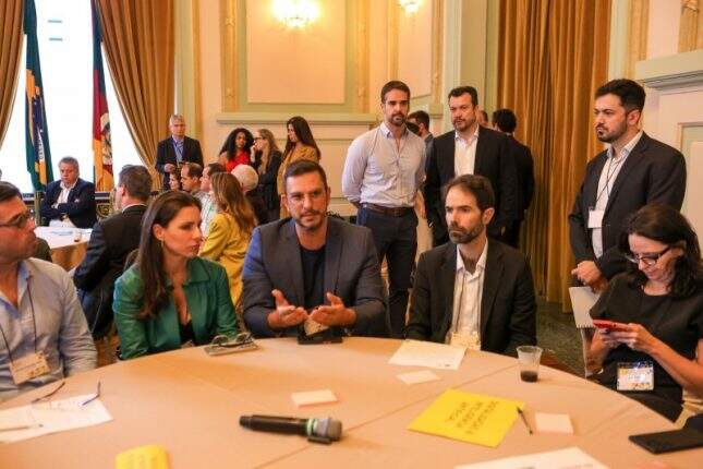 Depois de falar na abertura, o governador Eduardo Leite acompanhou as mesas-redondas no Salão Alberto Pasqualini, juntamente com o secretário-chefe da Casa Civil, Artur Lemos, e o secretário de Desenvolvimento Econômico, Ernani Polo. Deputados estaduais também participaram das discussões.