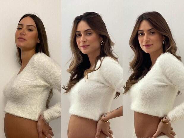 Thaila Ayla, de 35 anos, mostrou em seu Instagram nesta terça-feira (02) o crescimento da barriga da gravidez. À espera do primeiro filho, Francisco, do casamento com Renato Góes, a atriz mostrou a evolução da silhueta nos últimos três meses usando a mesma roupa e fazendo a mesma pose.
