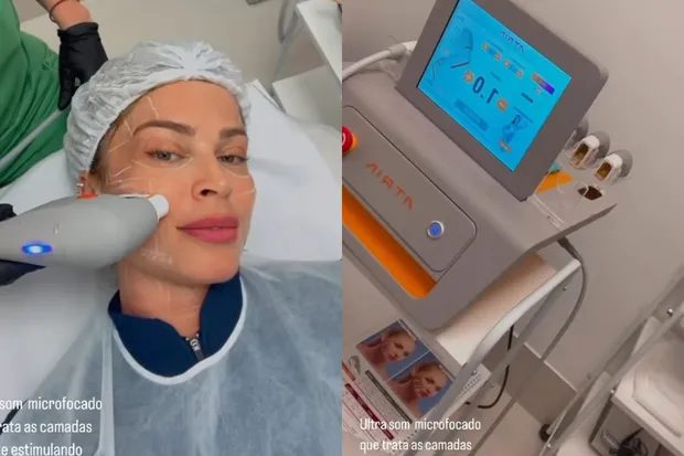 Grazi Massafera, aos 40 anos, está aproveitando a segunda-feira (26) para cuidar da estética. A atriz compartilhou com seus seguidores um vídeo mostrando o momento do procedimento, feito através de uma máquina.