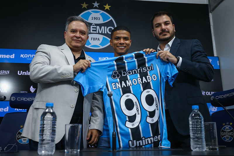 Acompanhado de empresários, da esposa e da filha, Enamorado afirmou viver a maior oportunidade da carreira e demonstrou ansiedade para estrear sob comando de Luís Castro. “Muito contente e ansioso de poder somar minutos com esta maravilhosa instituição. Quero já que arranque meus primeiros minutos na Arena do Grêmio. É uma linda oportunidade para minha carreira. Agora é trabalhar fortemente, humildemente e somar à equipe o quanto eu puder”, declarou.