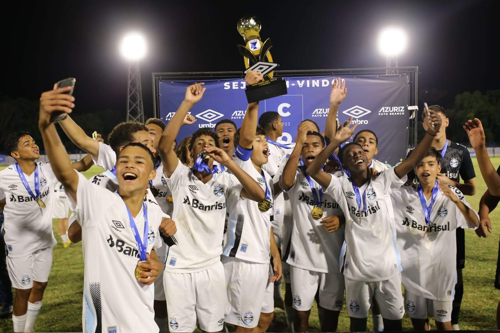 O Gêmio é o campeão na primeira edição da Copa Umbro Sub-14, disputada em Pato Branco e Marmeleiro, no Paraná. Na noite deste sábado (19), o Tricolor derrotou o Avaí no Estádio Os Pioneiros pelo placar de 4 a 2. Mateus Apucarana (3) e Roger marcaram os gols que deram a taça para a gurizada gremista.