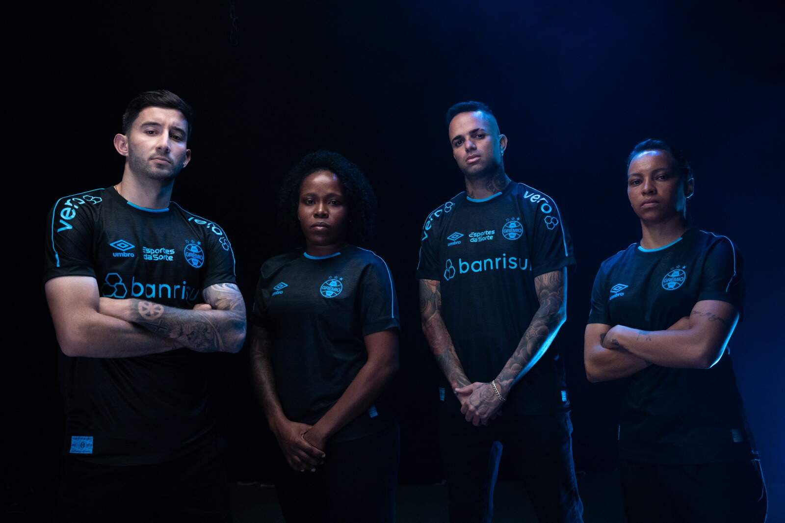 O Grêmio lançou a sua terceira camisa nesta quarta-feira (23). Em parceria com a Umbro Brasil, a camisa é toda preta atendendo ao desejo de alguns torcedores. O novo produto apresenta a cor preta, com detalhes em marca d’água, com formas intercaladas com o nome “Grêmio” entre si.