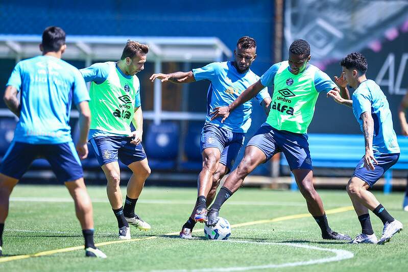 Na manhã desta quarta-feira (8), o elenco do Grêmio se reuniu no CT Luiz Carvalho, em Porto Alegre, para mais uma sessão de treinamentos focada em aspectos técnicos e de posicionamento. Sob o comando da comissão técnica, os jogadores participaram de atividades voltadas à construção de jogadas, movimentação ofensiva e organização defensiva.