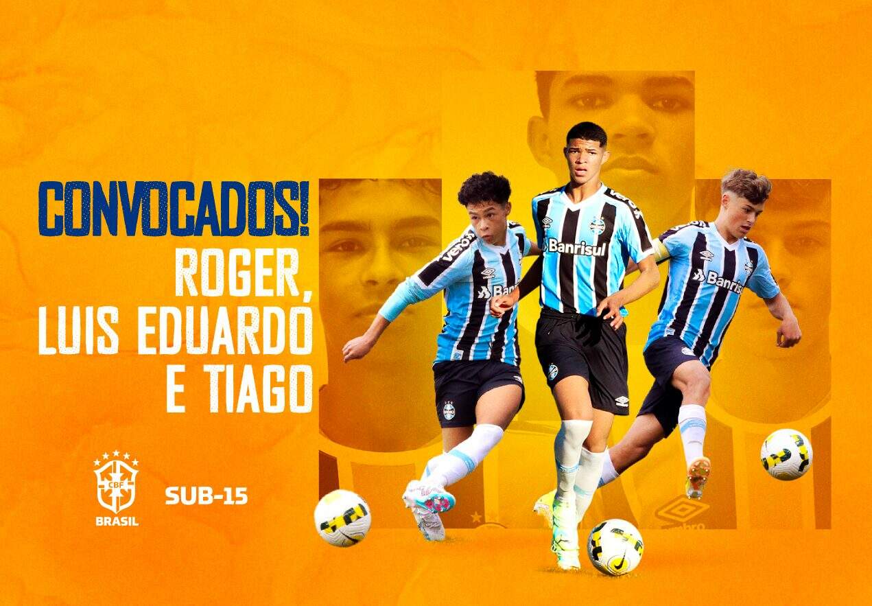 O Grêmio teve três jogadores convocados para defender a Seleção Brasileira Sub-15. Na tarde desta terça-feira (13), o técnico Dudu Patetuci chamou 26 jogadores e os gremistas Roger, Luis Eduardo e Tiago foram listados.