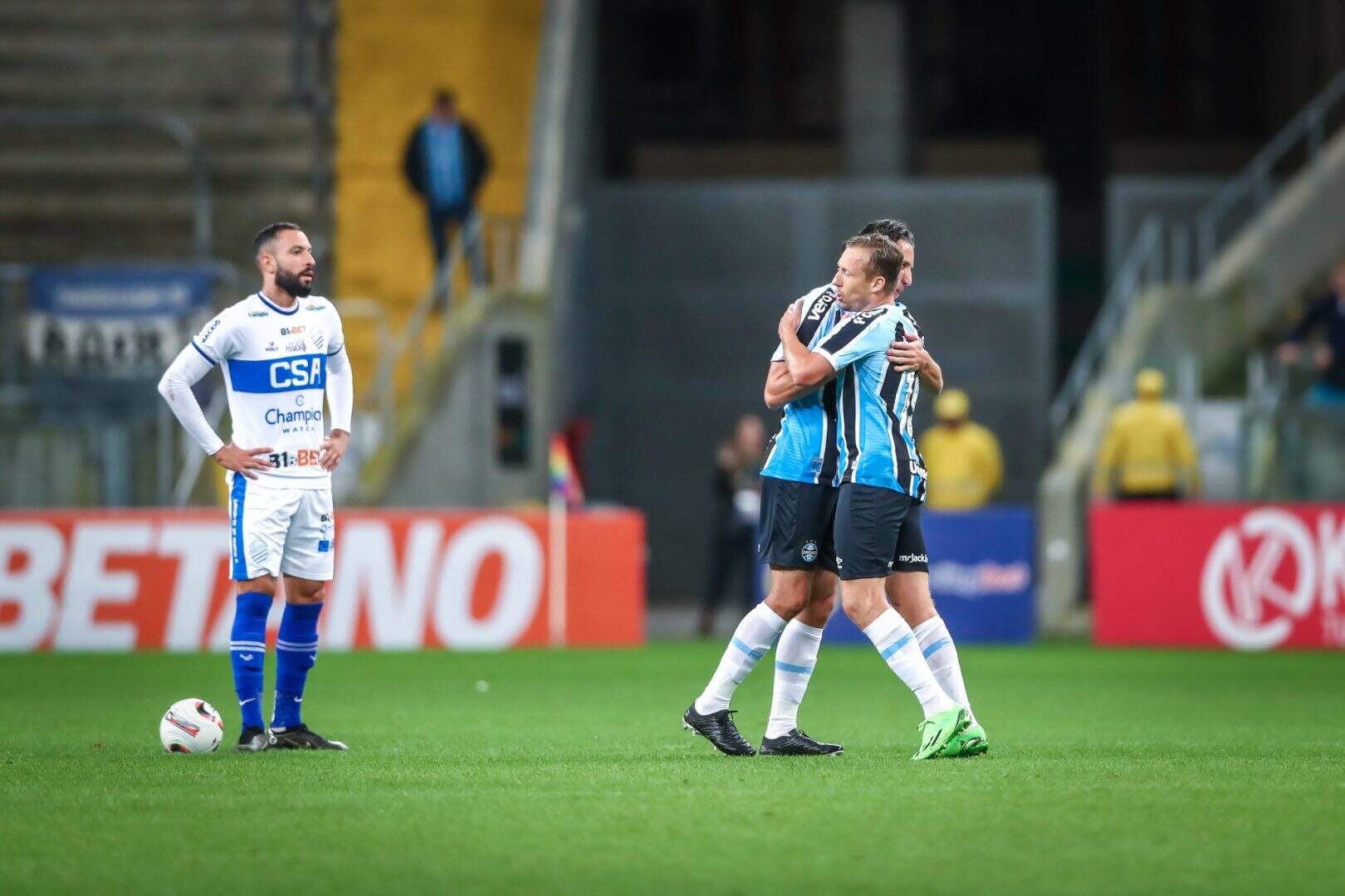 Dentro de casa, o Grêmio venceu mais uma partida nesta terça-feira (4). Desta vez o Tricolor recebeu o CSA e venceu pelo placar de 2 a 0. Os gols foram marcados na primeira etapa por Lucas Leiva e Diego Souza. Com os três pontos, a equipe gremista segue na segunda colocação com 56 pontos e abre 8 pontos do Sampaio Corrêa, primeiro time fora do G-4, faltando cinco rodadas.