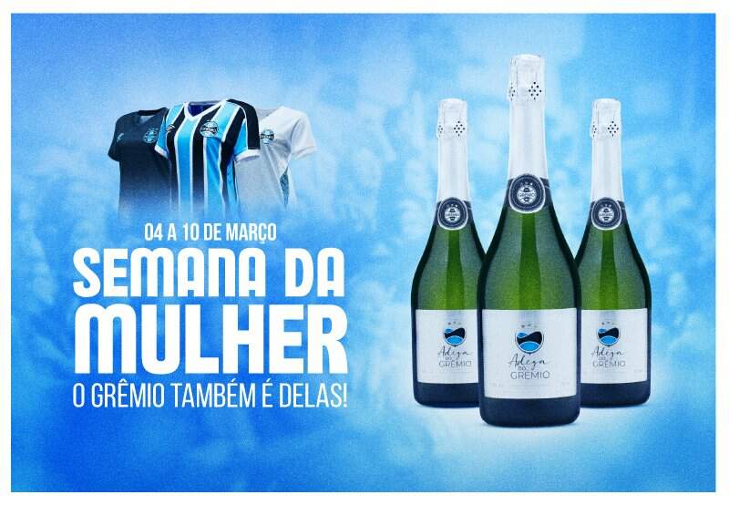 A promoção é limitada a uma unidade por compra e exclusiva pelo site da loja. A cada camisa feminina comprada, nos modelos tricolor, branca e preta, automaticamente o cliente também ganha um espumante Moscatel da Adega do Grêmio.