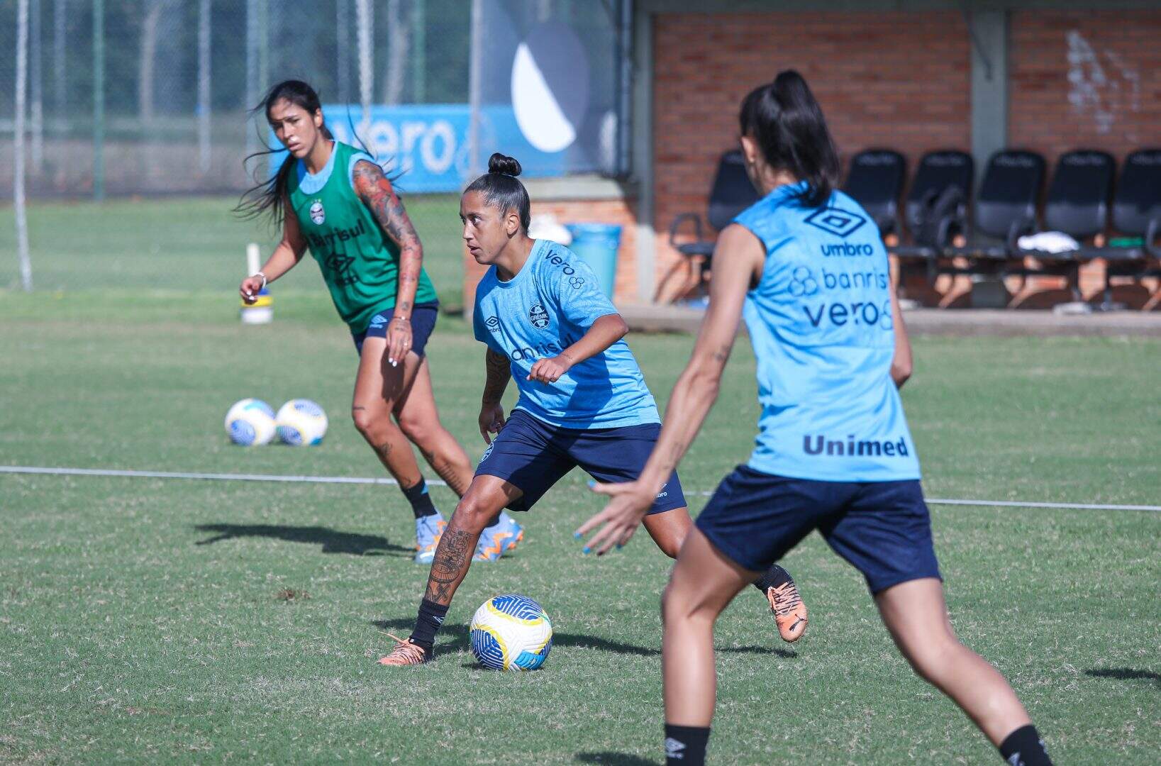 Os exercícios realizados envolveram mobilidade e troca de passes. No treino técnico, a comandante Thaissan Passos orientou as atletas em campo reduzido. O objetivo era manter a posse de bola e finalizar em pequenas goleiras.