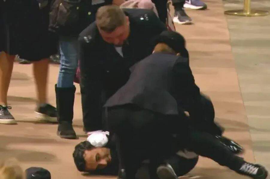 Um homem foi preso pela polícia de Londres ao tentar tocar o caixão da rainha Elizabeth II, que está sendo velada em Westminster Hall. O nome dele não foi revelado. O rapaz saiu da fila e conseguiu atravessar a área isolada para o caixão. Rapidamente, guardas que estavam no local conseguiram detê-lo, derrubando-o no chão.