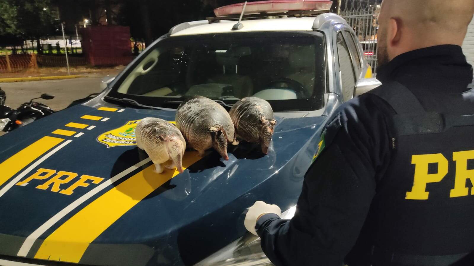 Após consulta aos sistemas, os PRFs verificaram que o motorista estava com o direito de dirigir suspenso e o veículo estava com o licenciamento vencido. Durante a vistoria no interior do carro foram encontrados três tatus silvestres já sem vida e sem nenhuma procedência.