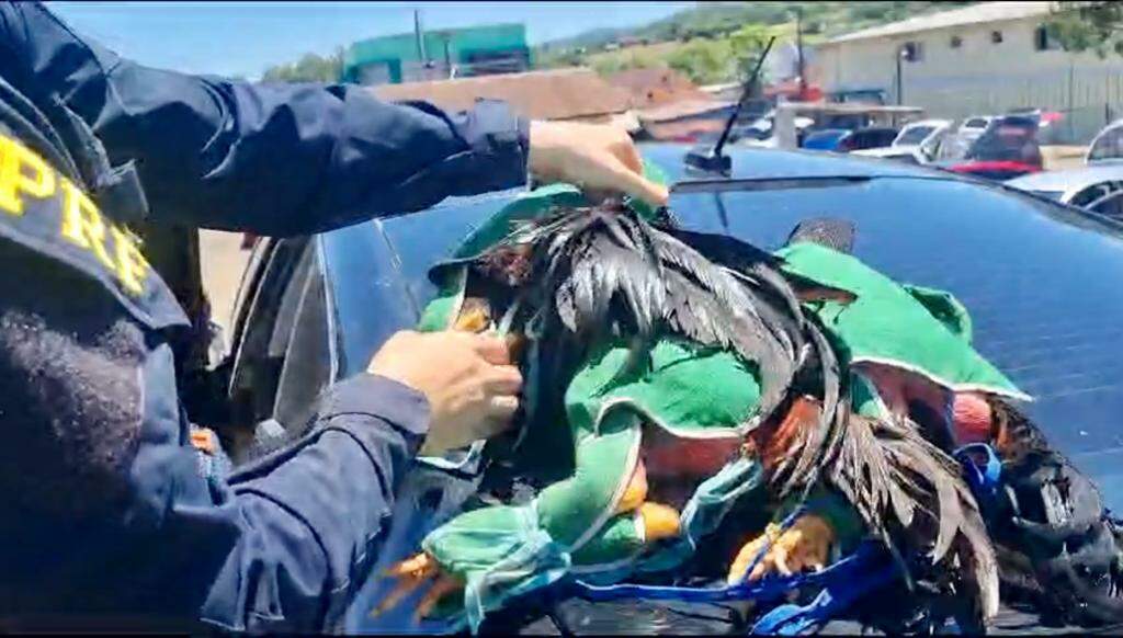 A PRF (Polícia Rodoviária Federal) prendeu, na manhã desta terça-feira (12), um homem que transportava três galos de rinha. A ação ocorreu na BR-386, em Paverama, no Rio Grande do Sul, próximo à uma praça de pedágio.