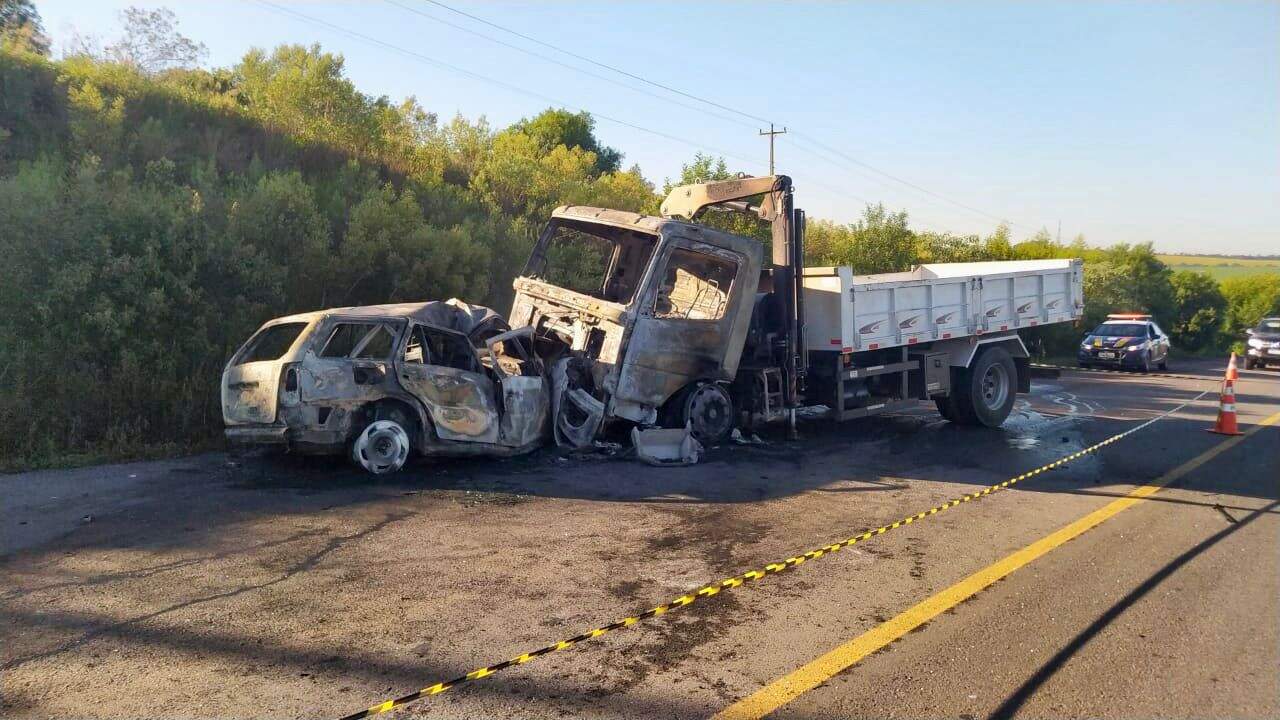 Um homem morreu nesta sexta-feira (10), após colidir com três caminhões, na BR 158, em Cruz Alta, no Rio Grande do Sul. A colisão foi frontal, envolvendo um carro do modelo Parati, com placas de Cruz Alta, e mais três caminhões, sendo dois Bitrem e um caçamba, todos com placas do Estado.