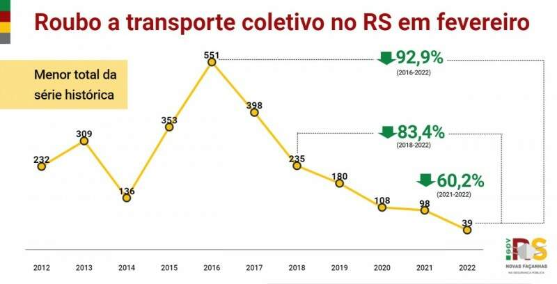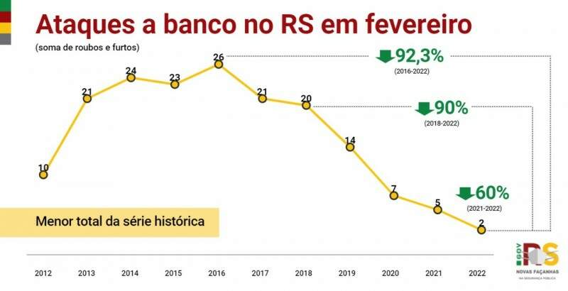 Apesar de terem uma série de características e peculiaridades diferentes, os principais crimes contra o patrimônio se encontram em um ponto comum no Rio Grande do Sul: tanto no resultado de fevereiro quanto no acumulado do 1º bimestre, todos registraram queda na comparação com igual período do ano passado e estão nos menores patamares já registrados em suas séries históricas.