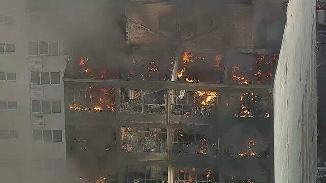 Segundo o Corpo de Bombeiros, o incêndio iniciou no térreo de um prédio de dez andares e se alastrou para outros quatro imóveis: duas lojas, que ficaram completamente destruídas; um prédio de seis andares, que corre risco de desabar; e uma igreja ortodoxa.