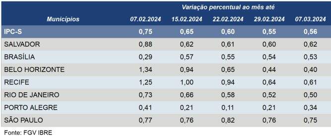 Entre as sete capitais pesquisadas pela FGV, o IPC-S também subiu em Salvador (BA) na primeira semana deste mês.
