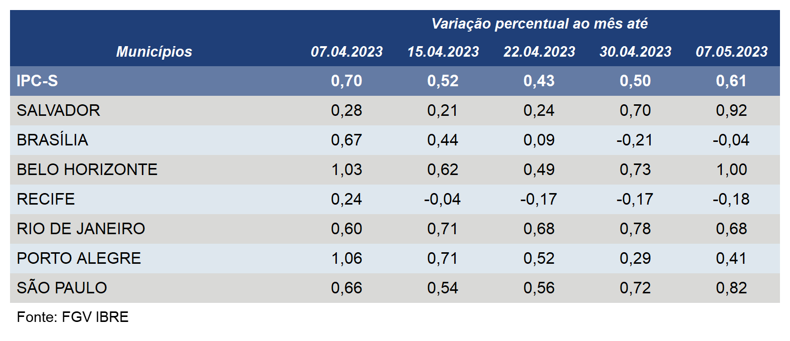 Além de Porto Alegre, o IPC-S acelerou em outras quatro das cinco capitais pesquisadas pela FGV na primeira semana de maio.