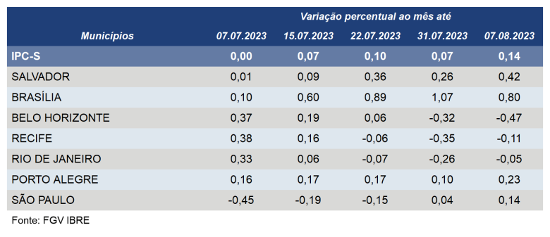 Além de Porto Alegre, o IPC-S acelerou em outras quatro das sete capitais pesquisadas pela FGV na primeira semana de agosto.
