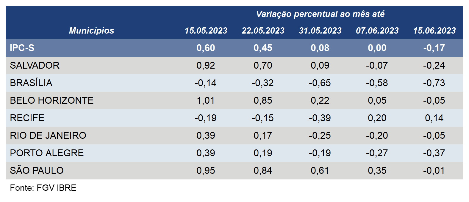 Além de Porto Alegre, o IPC-S caiu em outras cinco das sete capitais pesquisadas pela FGV na segunda semana de junho.
