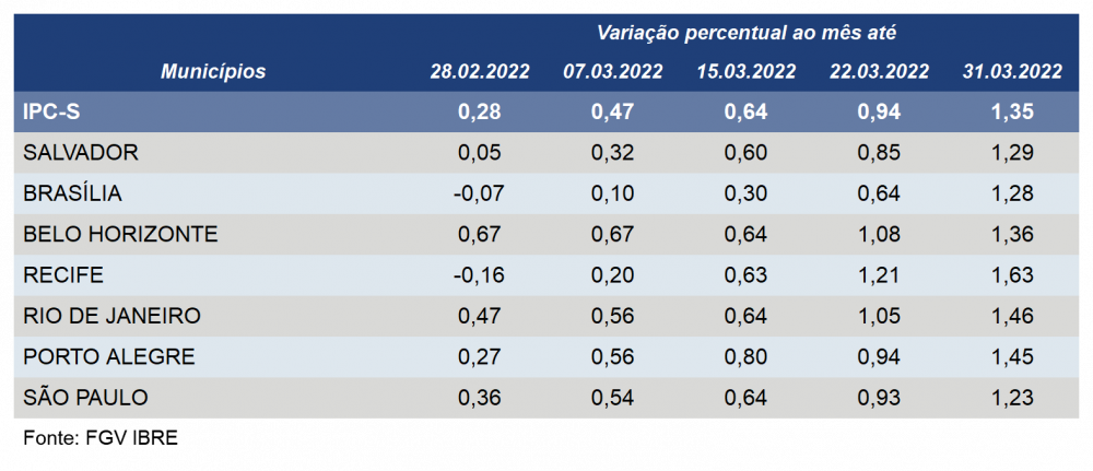 Além de Porto Alegre (0,94% para 1,45%), o IPC-S subiu nas outras seis capitais pesquisadas pela FGV.