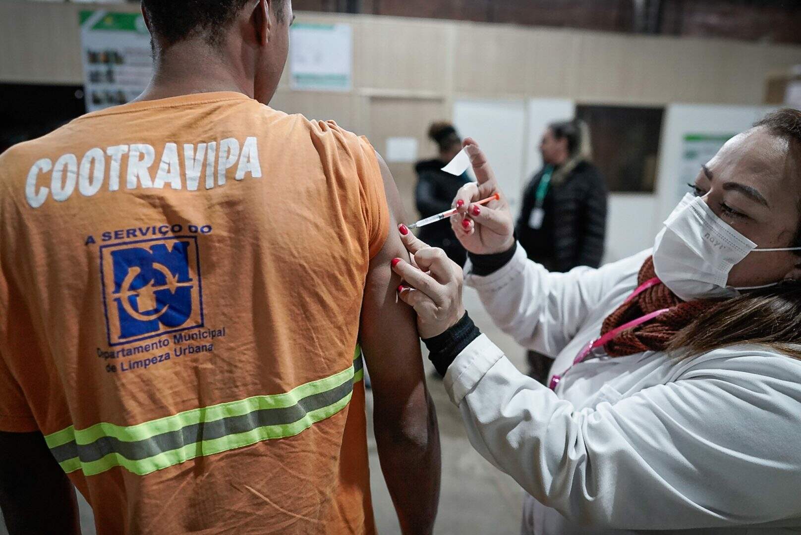 Equipes da SMS (Secretaria Municipal de Saúde) aplicaram vacina contra a gripe (influenza) e tétano em um grupo de trabalhadores de limpeza urbana na tarde de quinta-feira (16), no Setor Norte da Cootravipa, em alusão ao Dia do Gari. A iniciativa é uma parceria com o DMLU (Departamento Municipal de Limpeza Urbana) para dar início à imunização dos trabalhadores que atuam na força-tarefa de limpeza da cidade. Foram aplicadas 110 doses em cerca de 100 pessoas.