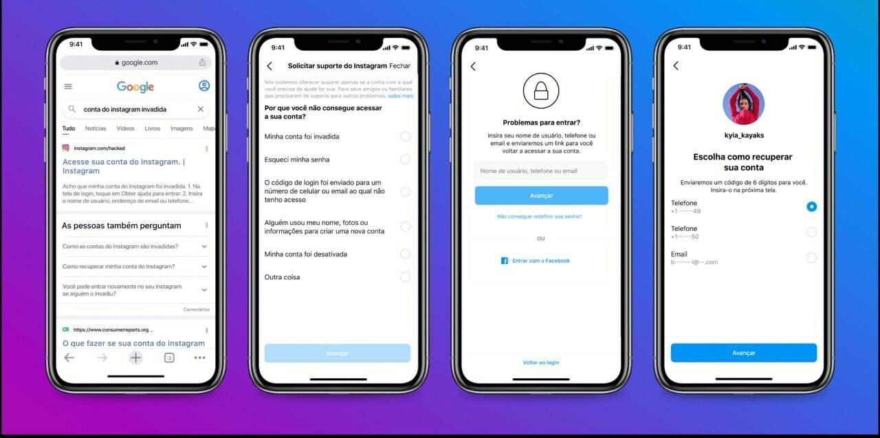Você pode pedir suporte tanto em casos de invasão de conta quanto no caso de você esquecer sua senha ou perder o acesso à autenticação de dois fatores. O próximo passo será seguir uma série de etapas para recuperar o acesso à sua conta.