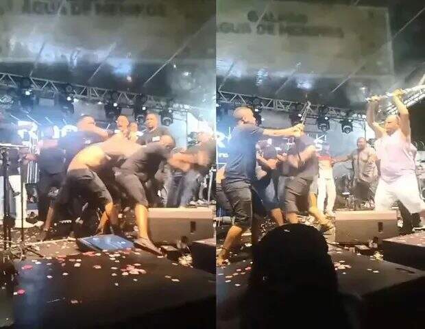 Integrantes da banda Psirico, liderada pelo cantor Márcio Victor, troaram agressões em cima do palco do Samba da Feira de São Joaquim, em Salvador, na Bahia, no domingo (16).