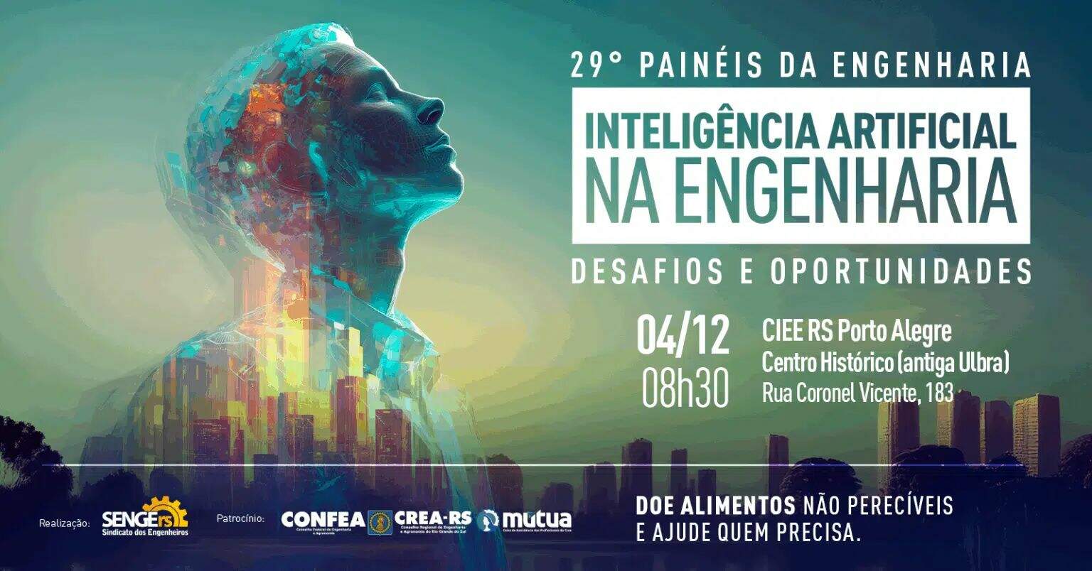 Com o tema “Inteligência Artificial na Engenharia: desafios e oportunidades”, ocorre na próxima quinta-feira (4), o 29º Painéis da Engenharia em celebração do Dia do Engenheiro. Na programação, especialistas debaterão os impactos e oportunidades da IA nas diversas áreas da Engenharia, bem como os desafios éticos e perspectivas futuras.