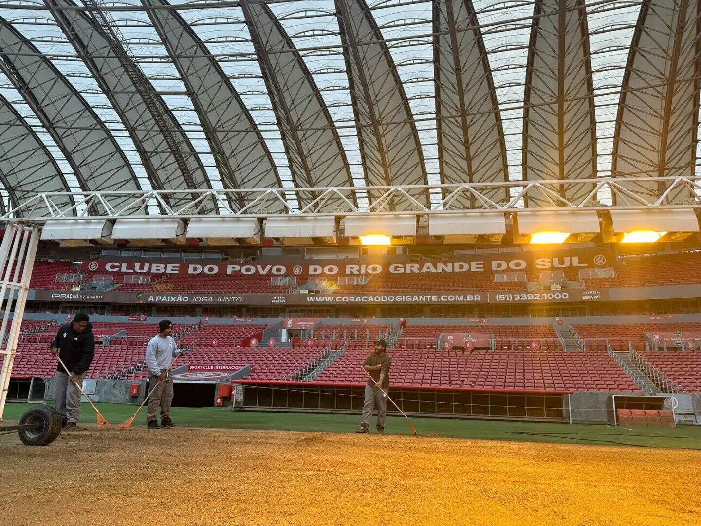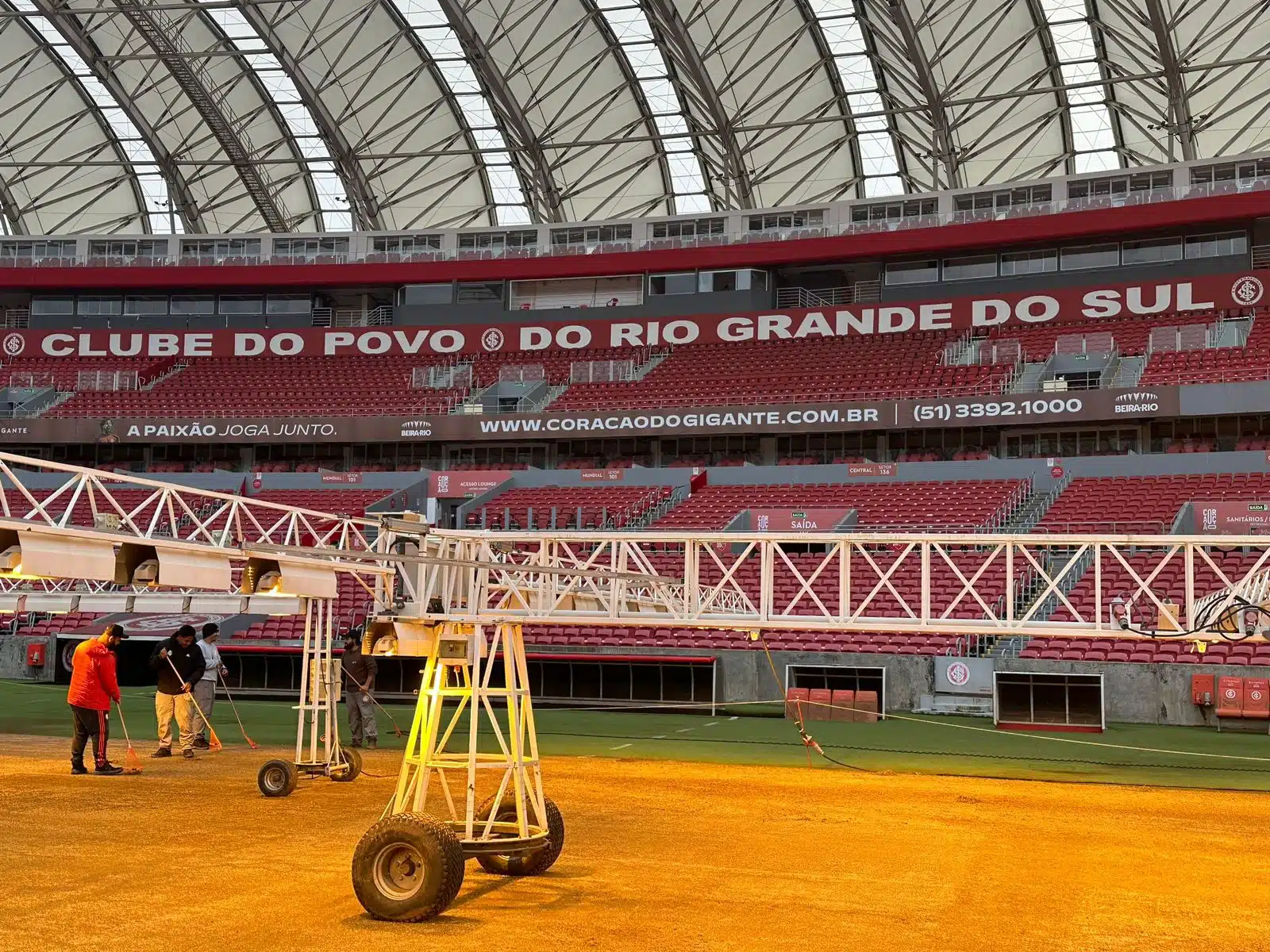 O replantio do gramado de inverno começou nesta semana – o trabalho havia sido realizado 15 dias antes do alagamento, mas precisou ser refeito. Os dirigentes colorados estimam prazo de 40 dias para o Inter voltar a jogar no Beira-Rio. Já a retomada em todo o complexo colorado é estimada somente para agosto.