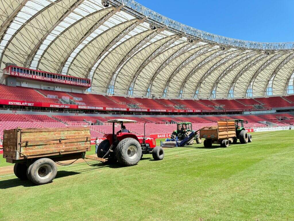 O Inter deu início nesta quinta-feira (5), a troca do gramado do Beira-Rio para a próxima temporada. Devido as enchentes que afetaram o Rio Grande do Sul, o gramado permanente do estádio foi perdido.