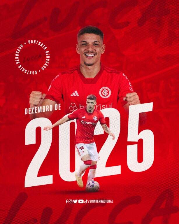 O Internacional renovou o contrato com o atacante Lucca. O novo vínculo vai até dezembro de 2025.