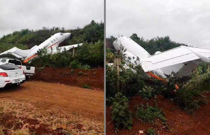 Um jato executivo do modelo EMB-500 (Phenom 100), fabricado pela Embraer, caiu em um barranco na manhã desta terça-feira (14), após o piloto não conseguir parar a aeronave na pista.