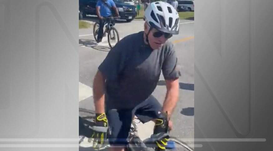 Questionado sobre o que o levou a cair da bicicleta, Biden bateu o sapato no pedal de sua bicicleta. “Tenho que tirar essas coisas. Meu pé ficou preso”, disse ele.