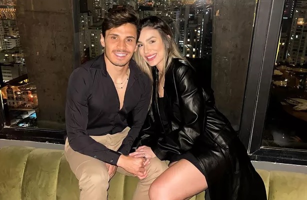 A empresária e influencer Bruna Santana, que é irmã do cantor Luan Santana, e o jogador do Palmeiras Raphael Veiga, anunciaram em uma live que estão noivos. O vídeo foi divulgado na web, neste sábado (23), e mostra o casal batendo papo com um grupo de fãs do jogador.
