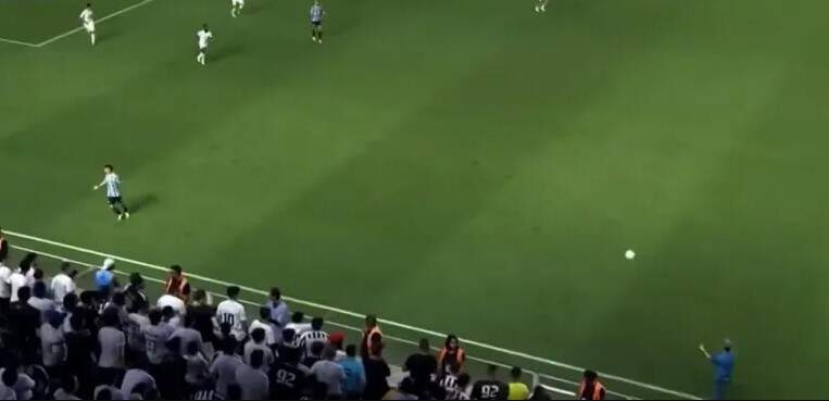 Ao verem isso, os santistas dispararam em direção ao ataque e conseguiram pegar a defesa do Grêmio toda desorganizada.
