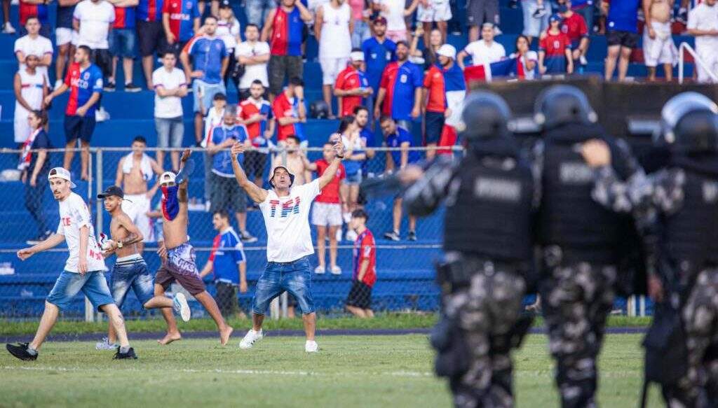 A Polícia Militar entrou em cena e atirou balas de borracha contra os torcedores, para evitar algo ainda mais grave. A partida teve que ser interrompida pela arbitragem e, depois, finalizada, já que não havia mais clima para que as equipes voltassem a campo.