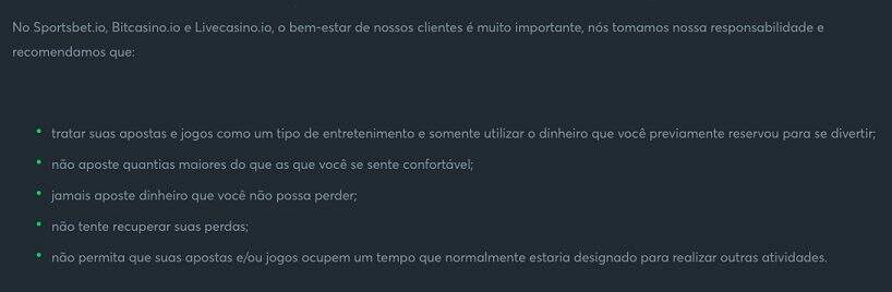 Na Sportsbet.io, por exemplo, eles dão algumas recomendações aos clientes: