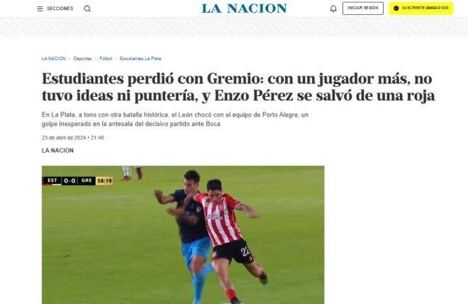 Jornais argentinos repercutiram a vitória do Grêmio sobre o Estudiantes em La Plata por 1 a 0, nesta terça-feira (23) à noite, pela Copa Libertadores da América.