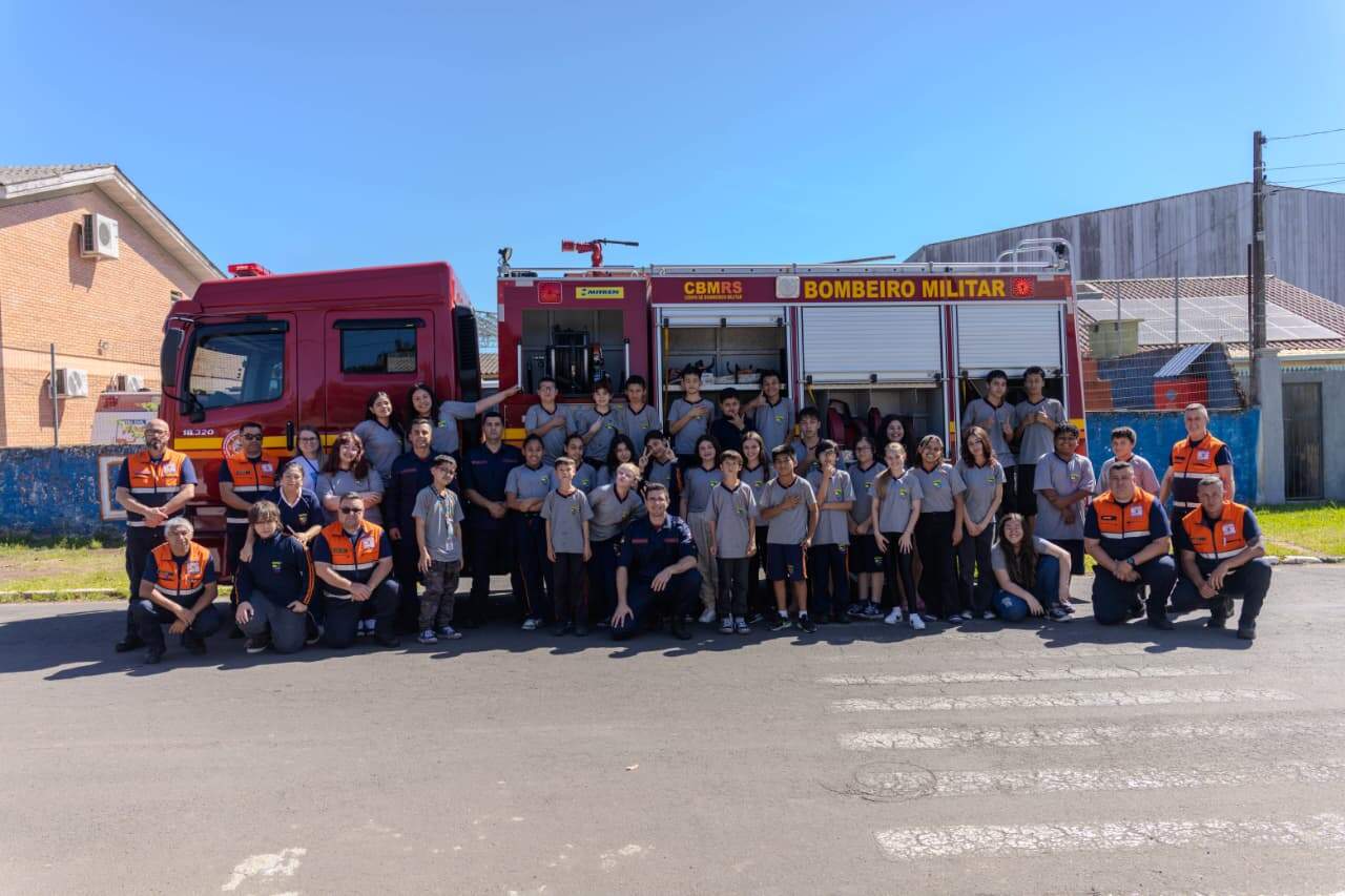 Estudantes das escolas Hugo Gerdau, Primo Vacchi e Otaviano Silveira participaram, nesta quarta-feira (22), de uma aula prática de primeiros socorros como parte do Curso Agente Mirim de Defesa Civil. A atividade foi conduzida por agentes da Defesa Civil Municipal e integrantes do Corpo de Bombeiros de Sapucaia do Sul, com foco em situações de emergência como incêndios e acidentes domésticos.