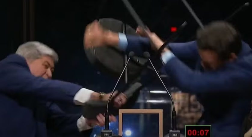 Pelas novas imagens é possível ver o momento em que Datena sai do lugar onde estava durante o programa e pega a cadeira que era usada pela candidata Marina Helena (Novo). Datena, então, atinge Marçal e, logo depois, ameaça a pegar outra cadeira. Os seguranças chegam para tentar controlar a situação.