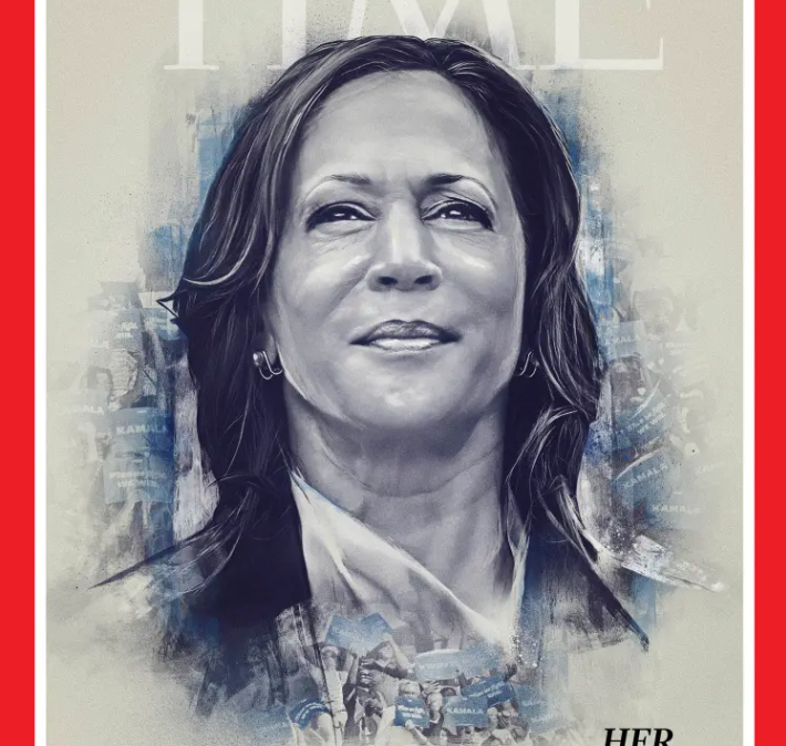 Na imagem que ilustra a capa da revista, a Time mesclou numa pintura o retrato de Harris com imagens de seus apoiadores em eventos de campanha, destacando a mobilização popular que se seguiu à nomeação dela e à saída de Joe Biden da corrida.