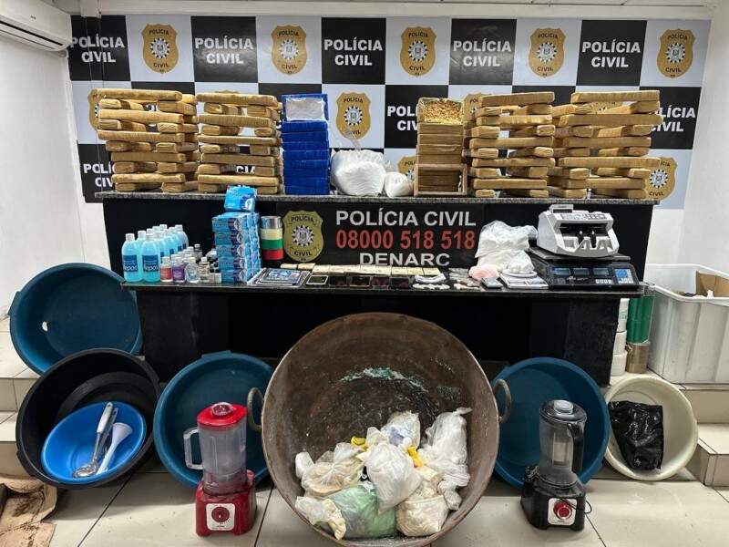 Um segundo homem que estava no imóvel também foi preso em flagrante. No local, havia insumos e compostos químicos, como cafeína e tetracaína, balanças, prensa hidráulica, materiais para embalar as drogas, bacias, liquidificadores, bem como produtos estéticos e medicamentos a serem adicionados nos entorpecentes, como acetona, analgésicos e antibióticos.