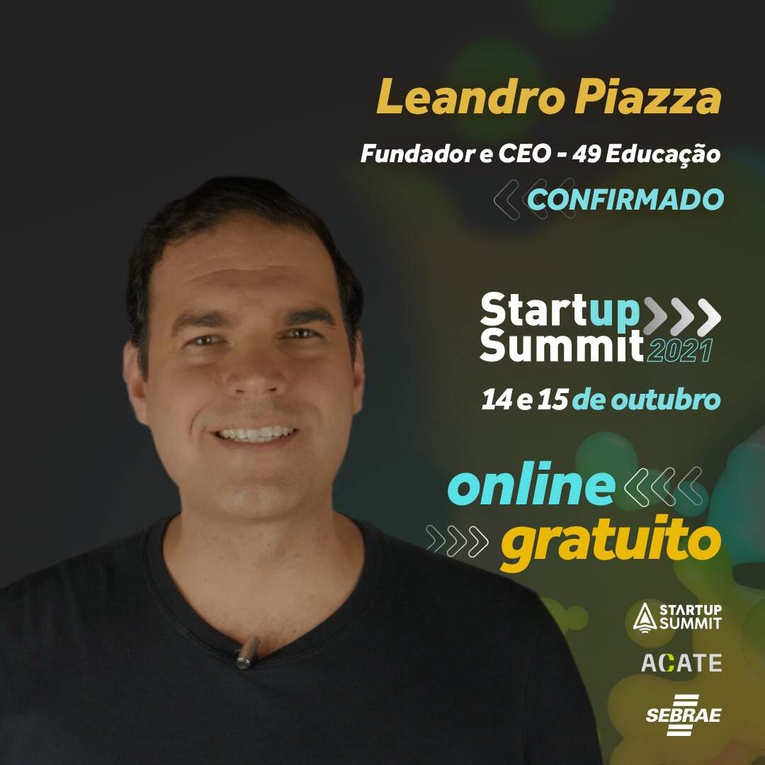 O CEO e fundador da 49 educação, Leandro Piazza é um dos palestrantes confirmados no Startup Invest Summit 2021, que irá acontecer nos dias 14 e 15 de outubro. O evento será híbrido e terá uma programação que agregará muito conteúdo aos futuros empreendedores, seja online ou presencialmente.