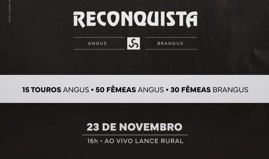 A Reconquista Agropecuária, comandada pelo empresário e criador José Paulo Dornelles Cairoli, realiza no dia 23 de novembro, às 16h, o tradicional Leilão de Produção Reconquista, com transmissão ao vivo pela plataforma Lance Rural. A oferta reúne 15 touros Angus, 50 fêmeas Angus e 30 fêmeas Brangus, todos com genética de ponta e desempenho comprovado em pista e campo. O evento será conduzido pelo leiloeiro Fábio Crespo.