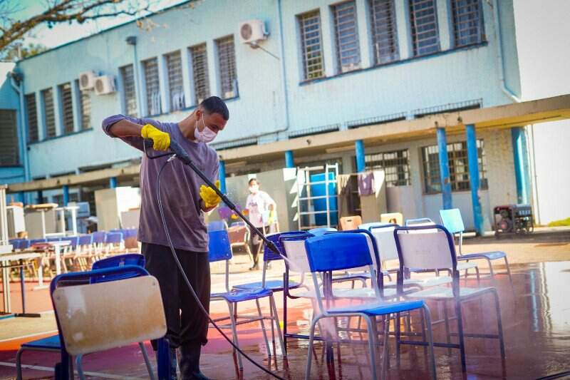 As principais ações de limpeza são coordenadas pela SOP e pela Seduc. Em alguns casos, o trabalho também recebe o auxílio da SSPS, que disponibiliza a mão de obra de pessoas privadas de liberdade, e da Casa Militar, que fornece, por meio da Defesa Civil, materiais de limpeza. O esforço articulado e a integração entre as pastas do Executivo estadual visam atender ao maior número possível de unidades escolares.