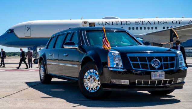 Para acompanhar o presidente Biden, as limusines presidenciais são transportadas por aeronaves de carga militar, como os C-17 da Força Aérea dos EUA.