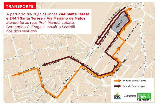 Os ônibus voltaram a atender as ruas Professor Manoel Lobato, Bernardino Caetano Fraga e Januário Scalzilli em ambos os sentidos. As mudanças podem ser conferidas no site da EPTC.