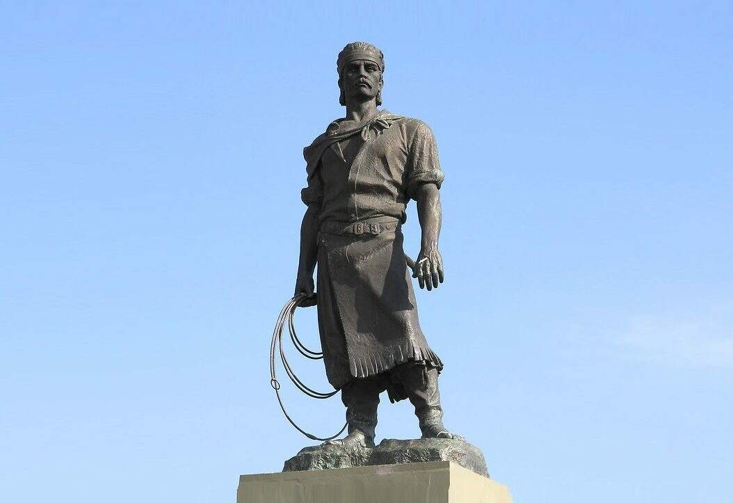 Criado e executado por Caringi em 1954, o monumento confeccionado em metal reproduz a figura de um gaúcho pilchado e teve como modelo o folclorista João Carlos Paixão Côrtes (1927-2018). A obra está instalada na Zona Norte de Porto Alegre, nas imediações do Aeroporto Internacional Salgado Filho e, desde 1992, é o símbolo oficial da cidade desde 1992. No ano passado, foi submetida a um amplo processo de restauração.
