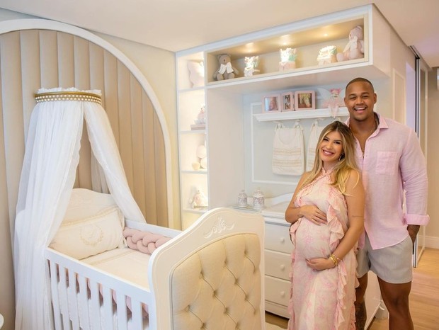 A dançarina e cantora Lore Improta e o maridão, o cantor Léo Santana, abriram as portas do quartinho da esperadíssima Liz, primeira filha do casal, que pode nascer a qualquer momento. O espaço foi feito com tema que levou o nome “Jardim Encantado de Liz”.