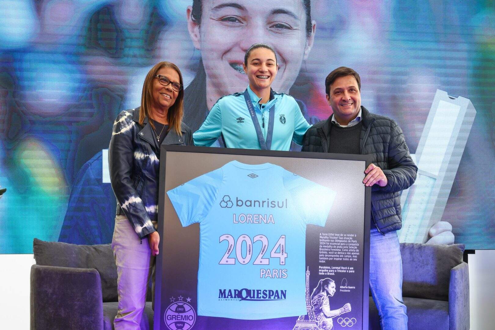 Destaque da Seleção Brasileira Feminina de Futebol que conquistou a medalha de prata nos Jogos Olímpicos de Paris, na França, a goleira Lorena foi homenageada pelo Grêmio, na quinta-feira (15), em Porto Alegre.