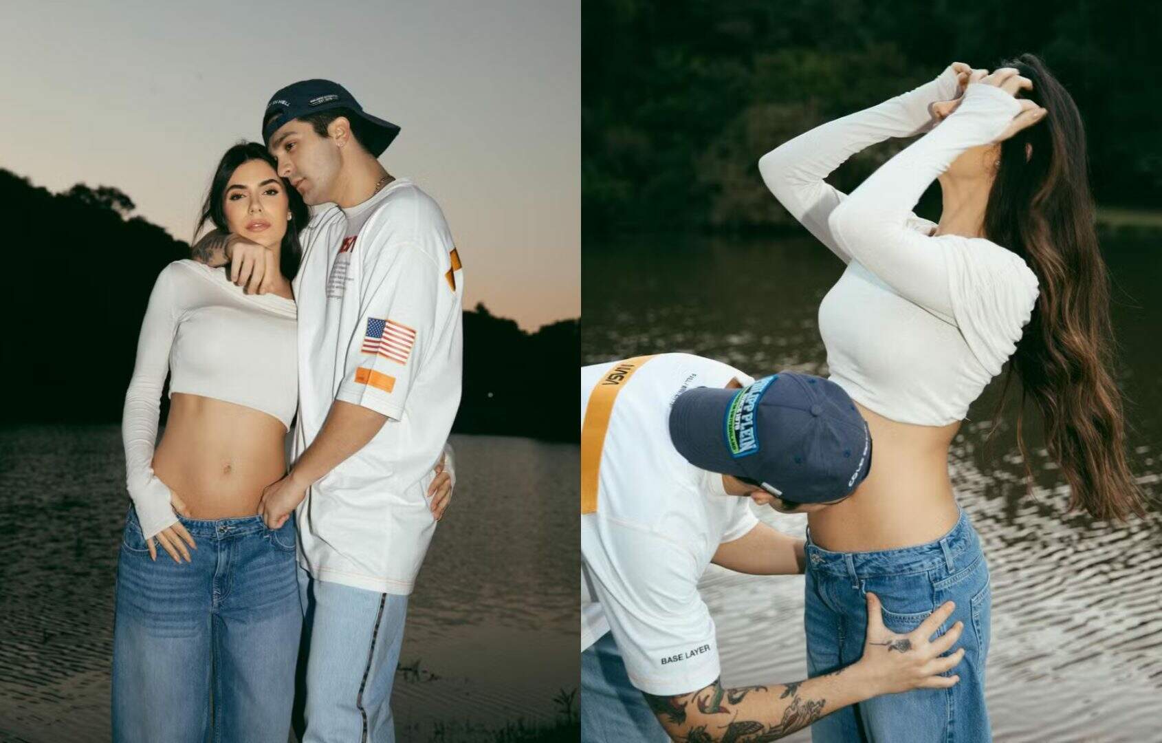 Enquanto o cantor aparece beijando a barriga da influenciadora em um dos registros, ela posa com a mão na região em outro. Ao que tudo indica, a gestação está em seus primeiros meses.